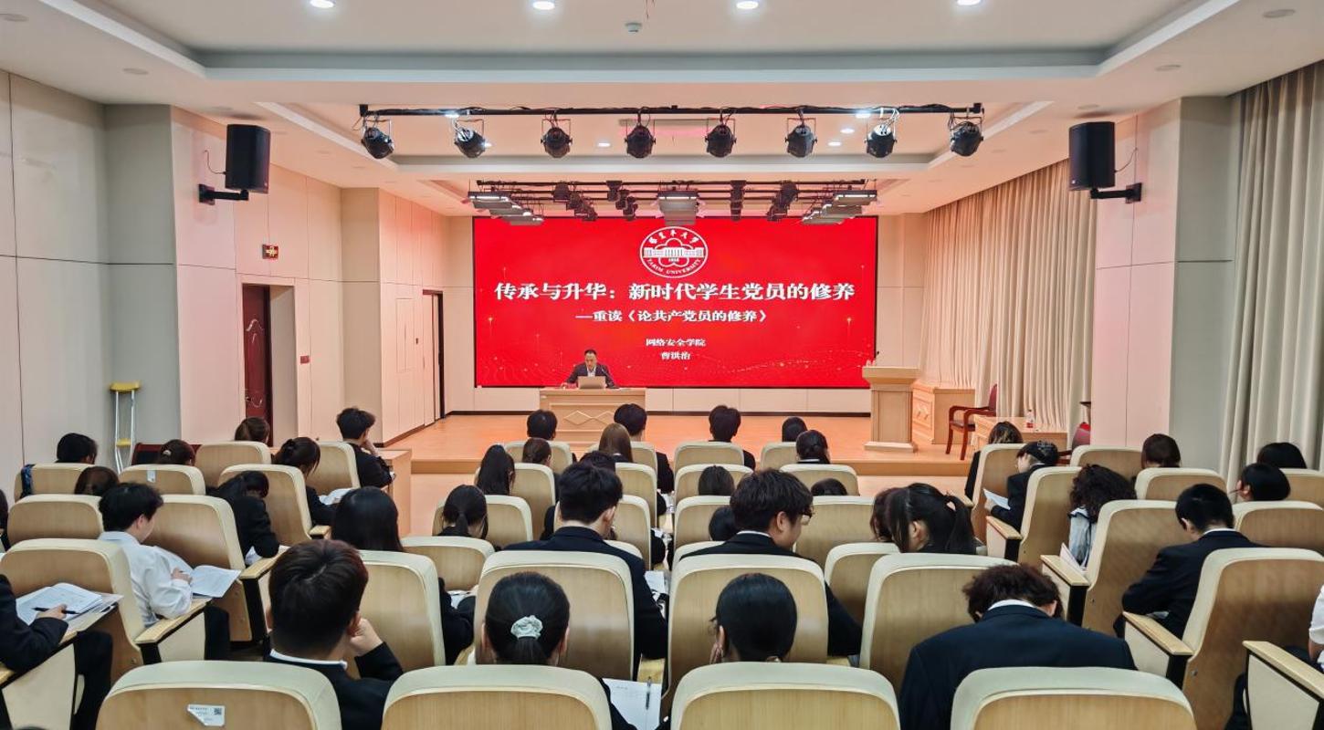 随后,曹洪治围绕著作的历史地位、核心思想与时代价值展开深入解读,系统阐释了《论共产党员的修养》在党的建设史上的里程碑意义,结合新时代党的建设总要求,详细拆解了著作中关于党员自我修养的核心内涵,引导学员深刻理解党性修养的本质要求。同时,他聚焦“新时代学生党员修养的实践路径”,结合青年学生成长特点,鼓励入党积极分子以经典为指引,在学习、工作和生活中锤炼党性、砥砺品格,以实际行动向党组织靠拢。
